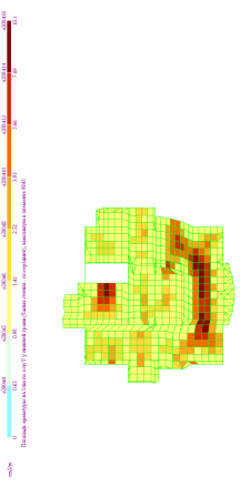 Рисунок Б.3 - Площадь верхняя арматуры в фундаментной плите вдоль оси X, см2/м