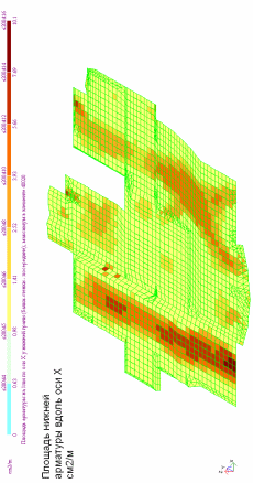 Рисунок Б.7 - Площадь нижней арматуры в плите перекрытия вдоль оси X, см2/м