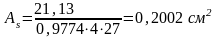 Требуемая площадь арматуры (см2), для полосы шириной b = 1 м вычислена по формуле (3.9)