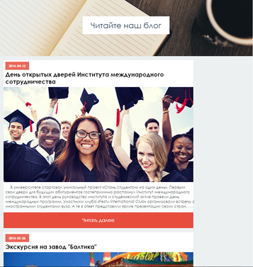 Поскольку блоги студентов за границей и новости института реализованы аналогично, рассмотрим функционал на примере новостей института.