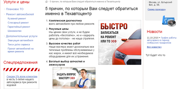 РАЗРАБОТКА САЙТА ДЛЯ АВТОТЕХЦЕНТРА