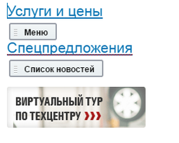 Рассмотрим, из чего состоит левая колонка. Вначале находится обычный заголовок второго уровня и это заголовок является ссылкой для раздела «услуги и цены».