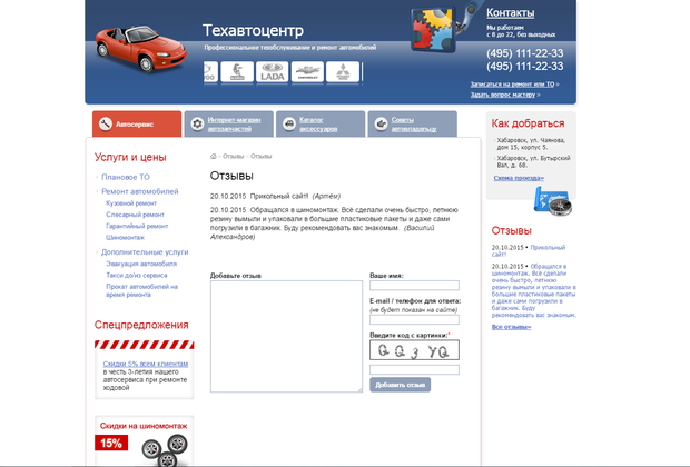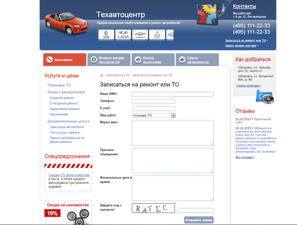Рисунок А.1 – Страница «Автосервис»