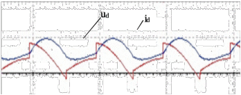 V1 подаётся нерегулируемый по фазе импульс αрег в контуре V1-V5 происходит коммутация тока, в результате того в работу вступает две секции, а на интервале 10-1 выходим на нормальный режим работы. Как показано на рисунке 2.10 ток двигателя не падает до нуля за счёт индуктивности во вторичной обмотки тягового трансформатора