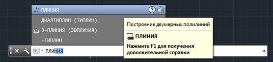 AutoCAD имеет в своем наборе командную строку, через которую также могут выполнятся операции проектирования. Например, чтобы построить простую прямую полилинию достаточно написать в командную строку команду «ПЛИНИЯ» (рисунок 1).