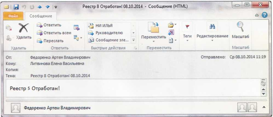 После того, как специалистом ОРФИ отработана последняя заявка в определенном кейсе, поступившем на проверку от заказчика, на почту ответственного сотрудника по электронной почте приходит уведомление о том, что весь реестр отработан (рисунок 26).