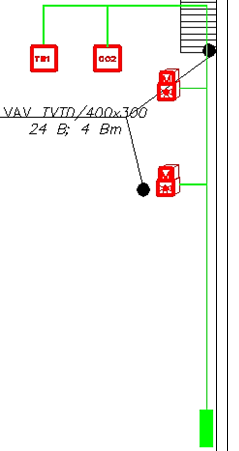 При увеличении концентрации СО2 в помещении контроллером вырабатывается управляющий сигнал, по ПИ-закону, который поступает на привода регулирующих клапанов VAV-боксов. Клапан открывается, и помещение начинает поступать большее количество воздуха. Процент открытия клапанов зависит от величины управляющего сигнала.