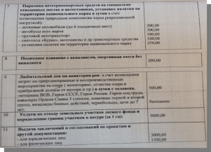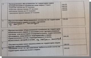 Цены на платные услуги, работы оказываемые ФГБУ «Национальный парк «Анюйский»