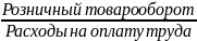 Показатель эффективности трудовой деятельности также может быть рассчитан как отношение объема розничного товарооборота к сумме расходов на оплату труда: