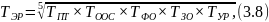 где ГЭР — обобщающий темп экономического роста предприятия; ТПТ - Темп «вменения производительности труда, %; ТООС- темп изменения скорости оборачиваемости оборотных средств, %; ТФО — темп изменения фондоотдачи основных фондов, %; Г,0 — темп изменения затратоотдачи, %; ГУР— темп изменения уровня рентабельности, %.