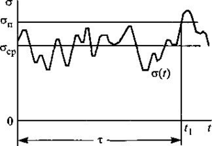=const). Пиковые экстремальные нагрузки, приводящие к повреждению элемента, возникают случайно, и невозможно однозначно предсказать момент (t=
