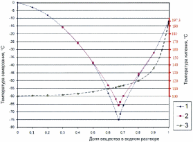 1 – температура замерзания; 2 – температура плавления; 3 – температура кипения
