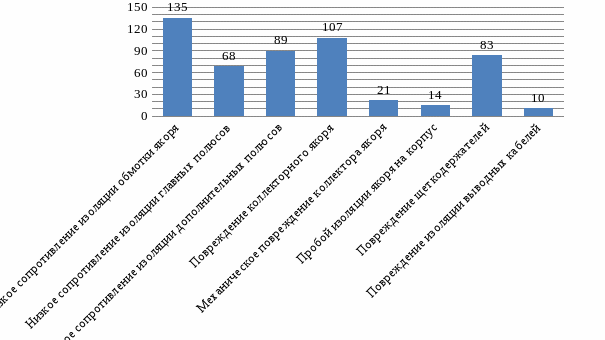 | 4. Снижение изоляции обмотки якоря | 5 | 10 | +5 |