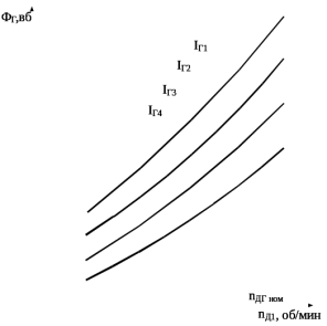 образуют семейство кривых, как это показано на рисунке 2.7. Для разных дизелей форма и крутизна характеристики наибольшей экономичности существенно различны, однако во всех случаях маг-нитный поток тягового генератора должен увеличиваться при увеличении часто-ты вращения вала дизель-генератора. От крутизны кривой