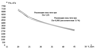 Рисунок 3.8 – Тяговая характеристика тепловоза в режиме возбуждения ПП