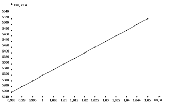 Результаты расчета изменения силы тяги в зависимости от диаметра колеса в режиме возбуждения ПП приведены в таблице 3.9.