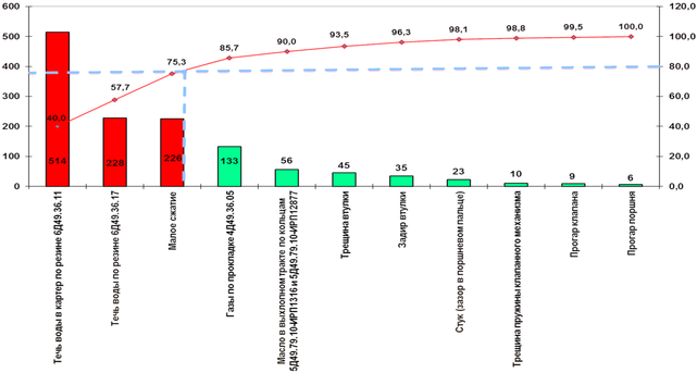 По данным таблиц 1.2–1.3 построена диаграмма Парето, представленная на рисунке 1.2.