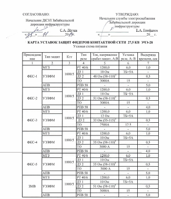 Рисунок А7 – Карта уставок защит ЭЧЭ 27(Чичатка) и ЭЧЭ 28(Аячи)