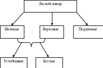 Лесные пожары бывают: низовые, верховые, подземные (торфяные, почвенные). В свою очередь низовые и верховые пожары могут быть устойчивыми и беглыми (рисунок 1.5).
