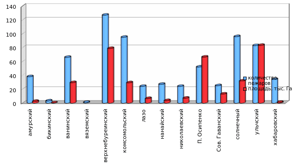 За 2014 год на территории Хабаровского края произошли пожары на общей площади 352710 га. Наибольшие площади были охвачены лесными пожарами в Верхнебуреинском и Ульчском районах. На их долю приходилось 39 % от от общей площади лесных пожаров на территории края [2].