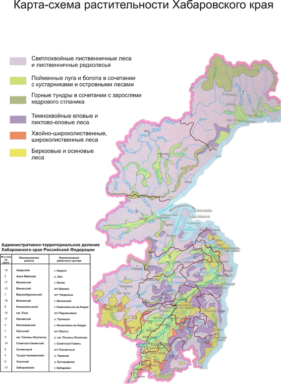 Рисунок 1.2 Карта схема растительности Хабаровского края