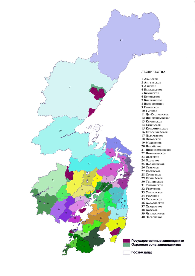 Рисунок 1.4 Карта-схема лесничеств Хабаровского края