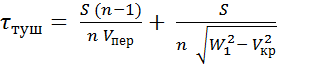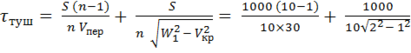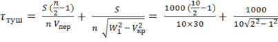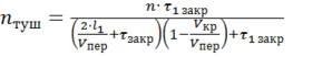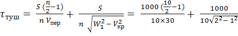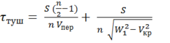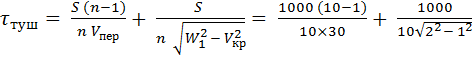 При заданных параметрах время тушения определяется количеством рабочих, занятых непосредственно тушением кромки (nтуш), при условии, что вспомогательные рабочие (nвсп) обеспечивают ритмичную работу тушильщиков. Поэтому на первом этапе расчета необходимо определить соотношение между числом тушильщиков и количеством вспомогательных рабочих. Из состава бригады вычисляется nтуш: