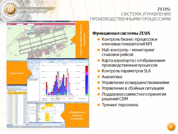 Совместно с «Ситуационным центром» дирекция по информационным технологиям аэропорта Шереметьево МАШ занималась внедрением системы управления производственными процессами – Neuropie ZEUS (рис.3.7).