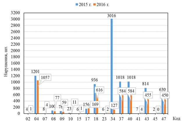 | № п/п | Нарушения | 2015 г. | 2016 г. |