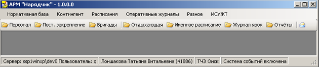 Основная задача, которую решает АРМ ТЧБ, – автоматизация оперативной работы нарядчика по формированию журнала явок, т.е. постановке локомотивных бригад и отдельных работников в наряд. Автоматизация основных функций нарядчика решает сразу несколько задач [9]: