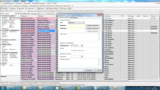 Рисунок 3.4 – АРМ ТЧБ «Формирование локомотивных бригад»