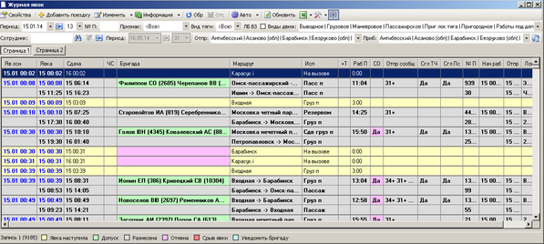 Предусмотрен ввод и корректировка расписаний явок, заложена возможность работы с «чужими» бригадами (бригадами других депо приписки). Журнал явок выполнен в виде таблицы, описывающей поездки бригад. В «Журнале явок » можно отобразить параметр, необходимый для оперативной работы с бригадами и анализа ситуации, складывающейся в депо с формированием и исполнением наряда во всех видах движения [9].