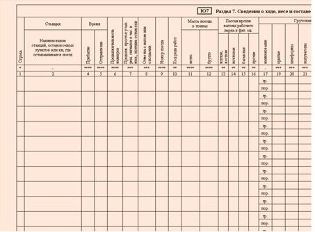 - Раздел 7. «Сведения о ходе, весе и составе поезда».