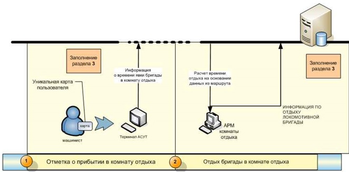 Заход локомотива в оборотное депо сопровождается проходом КП. В случае опоздания, система автоматически формирует очередное замечание в раздел 6 ЭММ. Время явки к ТЧД, локомотивная бригада фиксирует, используя персональные карты доступа и терминалы регистрации локомотивных бригад. Данная информация необходима для заполнения третьего раздела ЭММ [10].