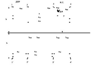 На рисунке 8.2.1 представлена расчетная схема для двухпутного участка контактной сети с цепной подвеской (точки 3 и 4) и проводами ДПР (точки 1 и 2), расположенными с полевой стороны опор.