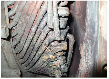 Рисунок 2.5 – Повреждение обмотки статора в результате увеличенного радиального биения якорного подшипника вследствие их разрушения