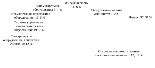 Рисунок 2.1 – Распределение отказов оборудования гарантийных тепловозов 2ТЭ25А по