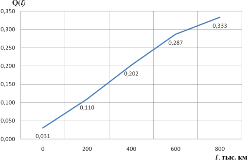 Рисунок 4.6 – График изменения вероятности отказа Q(l) в зависимости от наработки