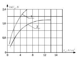 Условия прохождения тока через контактную поверхность щеток марки ЭГ различны при малых и больших плотностях тока, как это показано на рисунке 4.3.