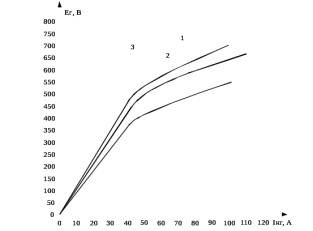 Рисунок 2.5 – Характеристики холостого хода возбудителя типа В – 600 1 – 15 позиция; 2 – 13 позиция; 3 – 9 позиция