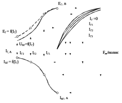 Сила тяги тепловоза определяется токами электродвигателей. Следовательно, плавный управляемый разгон поезда может быть обеспечен путем поддержания тока тягового генератора постоянным при данном положении рукоятки контроллера машиниста и изменения его при изменении положения рукоятки в соответствии с линиями А1В1 А2В2, как это показано на рисунке 2.8. Изменение тока тягового генератора по заданному закону осуществляется путем регулирования напряжения по этому току. В принципе возможно раздельное управление изменением мощности и тока генератора при разгоне поезда. Преимуществом раздельного регулирования является возможность произвольного выбора любой силы тяги при разгоне и любой мощности в конце разгона, что делает управление более гибким. Практически наиболее часто применяется управление с помощью одной рукоятки контроллера таким образом, что каждому ее положению соответствует определенная частота вращения вала дизельгенератора и определенный ток генератора при разгоне поезда. При уменьшении частоты вращения и мощности целесообразно также уменьшать максимальный магнитный поток тягового генератора для того, чтобы уменьшать мощность его системы возбуждения.