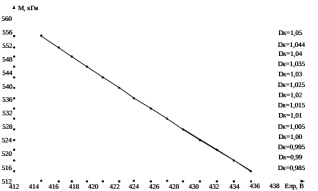 Рисунок 3.6 – График изменения момента вращения на валу двигателя и противо-ЭДС в зависимости от диаметра колеса при скорости движения тепловоза 25 км/ч
