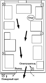 Еще при планировке зданий и сооружений предусматривают возможность быстрой эвакуации людей и материальных ценностей в случае возникновения пожара. Это достигается при обеспечении кратчайшего расстояния от рабочих мест до выхода наружу, минимального времени выхода из здания, безопасности движения людей при пожаре.