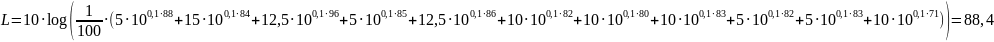 где, Li - уровень звука класса i, дБА, ti - относительное время воздействия шума класса Li, % времени измерения; T – общее время измерений, 100%.