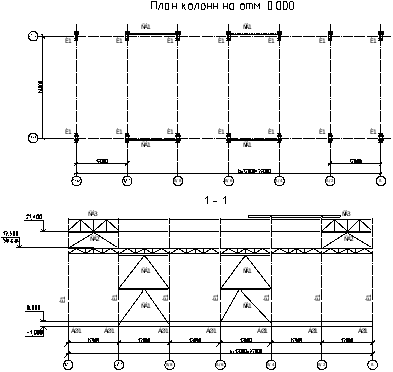 Рисунок 3.1 – План колонн на отм. 0.000. Разрез 1-1