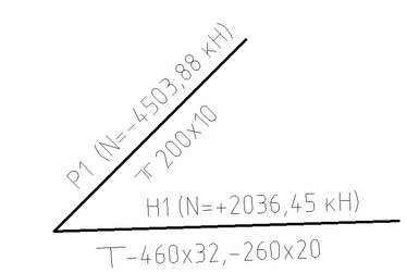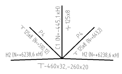 Рисунок 2.29 Схемая для расчета узла сопряжения стойки, раскосов и нижнего пояса