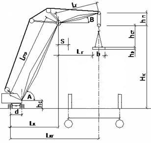 L - угол наклона оси стрелы крана к горизонту.
