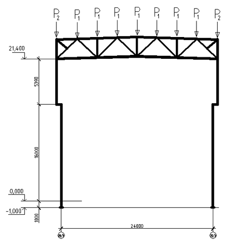 Действительная и расчетная схема поперечной рамы приведены на рисунка 2.3,2.4.