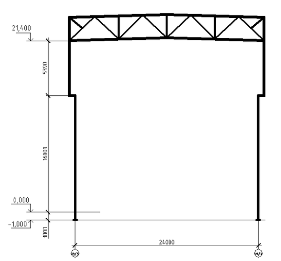 Стропильные фермы, пролетом 24,0 м, запроектированы: пояса из сварных тавров, раскосы и стойки из парных уголков.