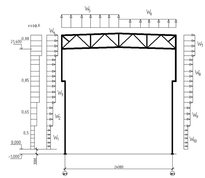 Рисунок 2.8 Схема загружения ветровой нагрузкой